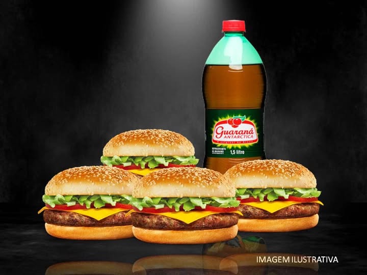 | 4 PLUTAO BURG (CARNE BONINA 120G CADA+QUEIJO+REFRI 1 LITRO |